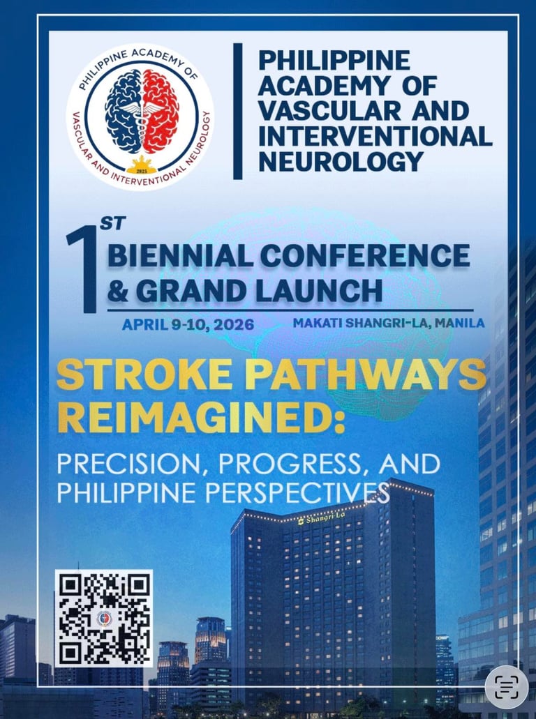 It is my great honor to welcome you to the First Biennial Conference and Grand Launching of the Philippine Academy of Vascular and Interventional Neurology (PAVIN) on April 9–10, 2026 at the Makati Shangri-La, Manila.